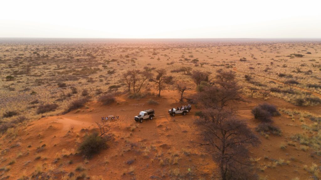 The day I left for Tswalu, I traded the sound of city traffic for silence that stretched for kilometres. Twelve hours of driving carried me from the familiar greens of the Western Cape into a land that felt older than time itself. Red dunes rising and falling, heat shimmering on the horizon and a sky so wide it seemed to swallow you whole. Each turn of the road was a slow shedding of comfort. Fynbos gave way to savannah, and soon I was stepping into the vastness of the Kalahari.